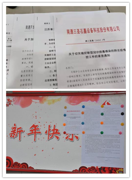 2020年伊始,在這場沒有硝煙的抗疫戰(zhàn)斗中,億萬中國人民團(tuán)結(jié)一心、同舟共濟(jì),眾志成城抗疫情。自爆發(fā)疫情以來,三圣企業(yè)集團(tuán)也立即成立防疫領(lǐng)導(dǎo)小組,緊急召開兩次會議,部署相關(guān)防疫工作,嚴(yán)格執(zhí)行《南通市人民政府關(guān)于實施新型冠狀病毒感染的肺炎疫情一級響應(yīng)措施的通告》文件精神。